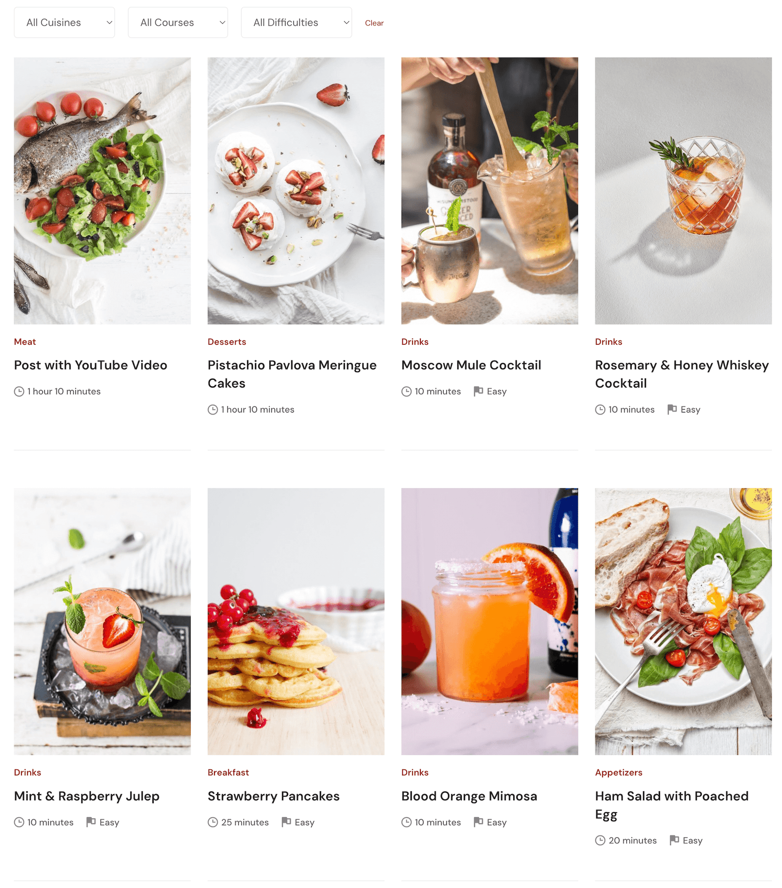 The widget below includes recipe filters, which is a PRO feature from the Recipe Card Blocks plugin.